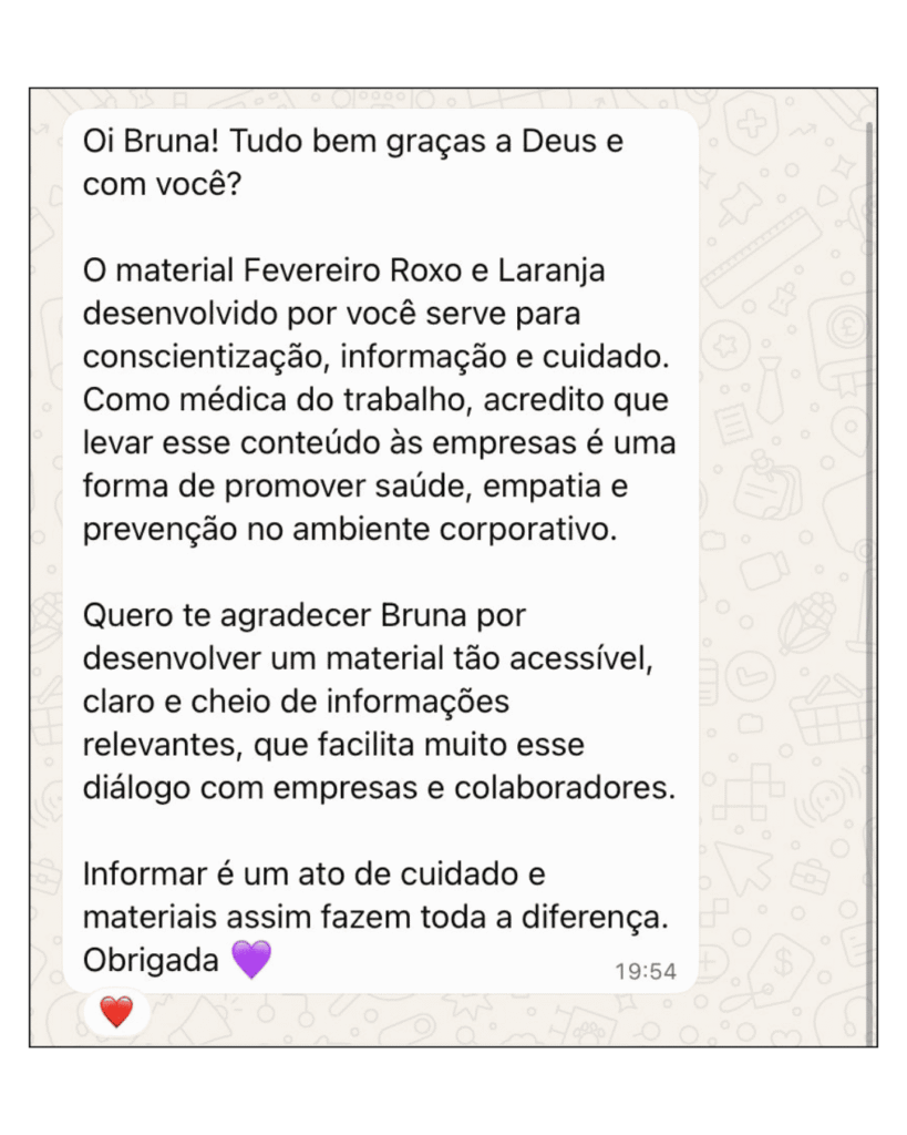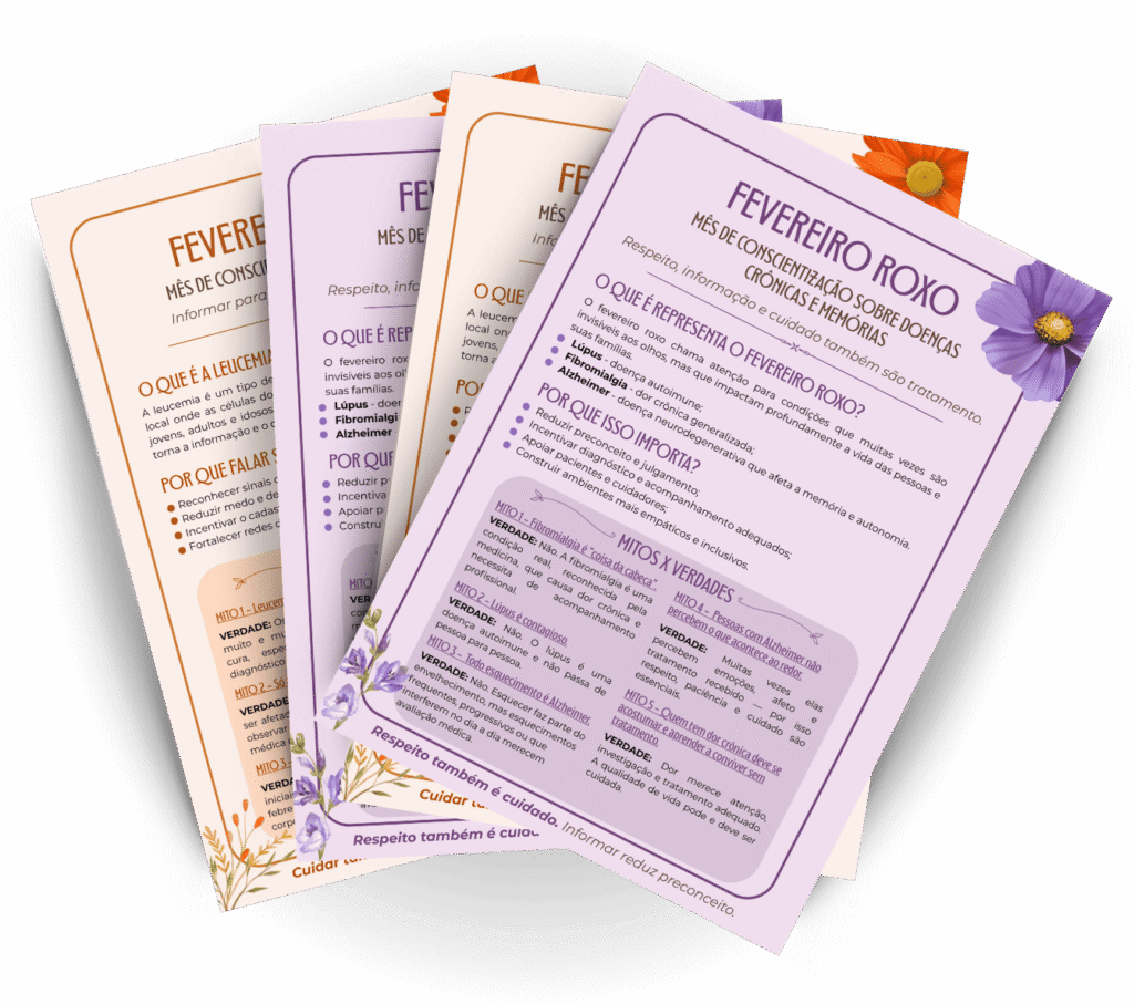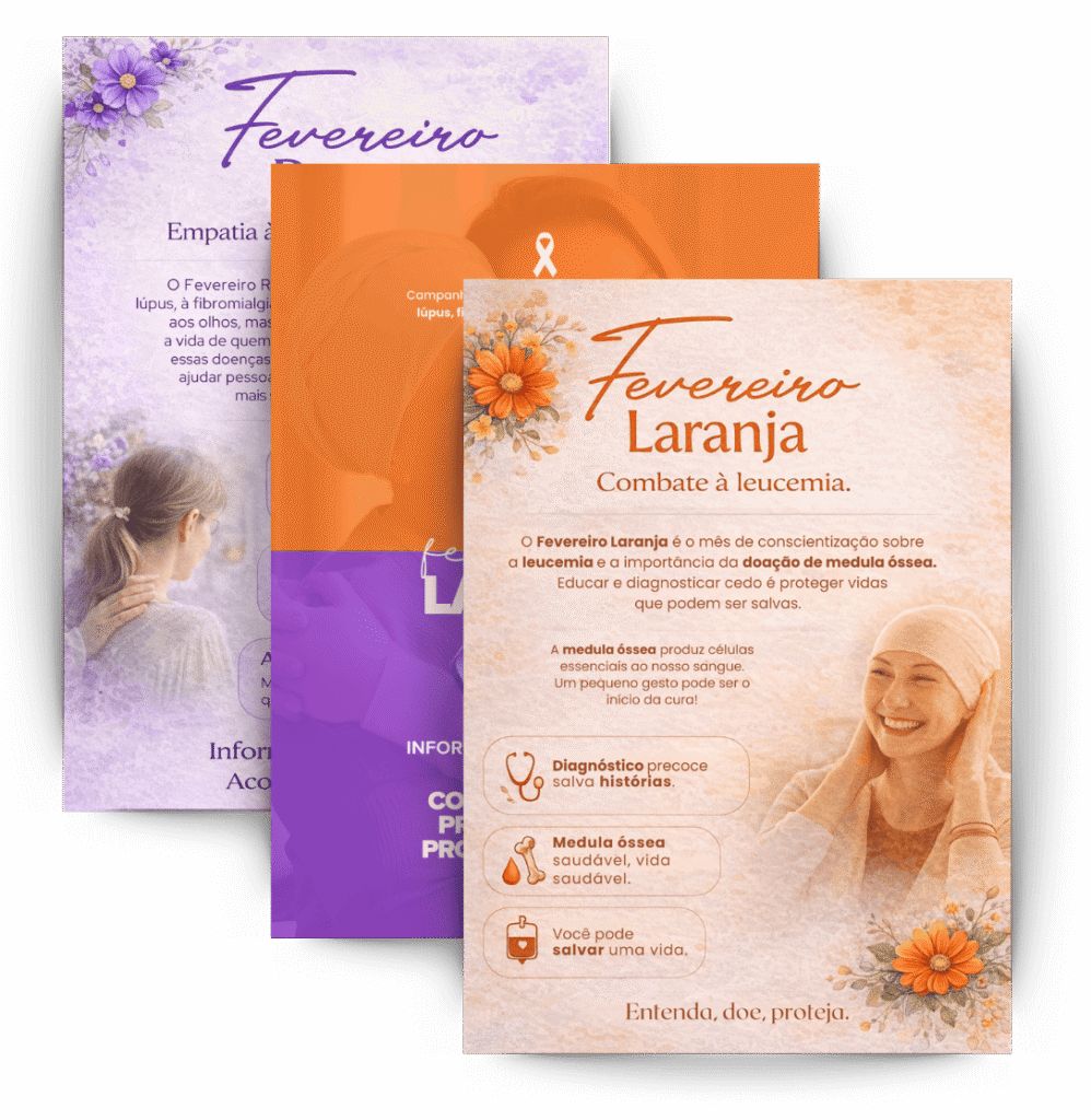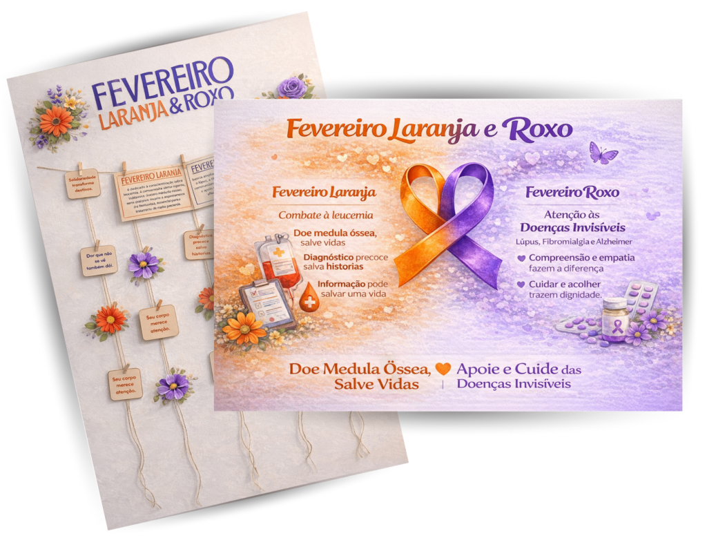 É ideal para campanhas de Fevereiro Laranja & Roxo em escolas, empresas, clínicas, consultórios, projetos sociais, eventos comunitários e espaços de circulação (recepções, corredores e murais).